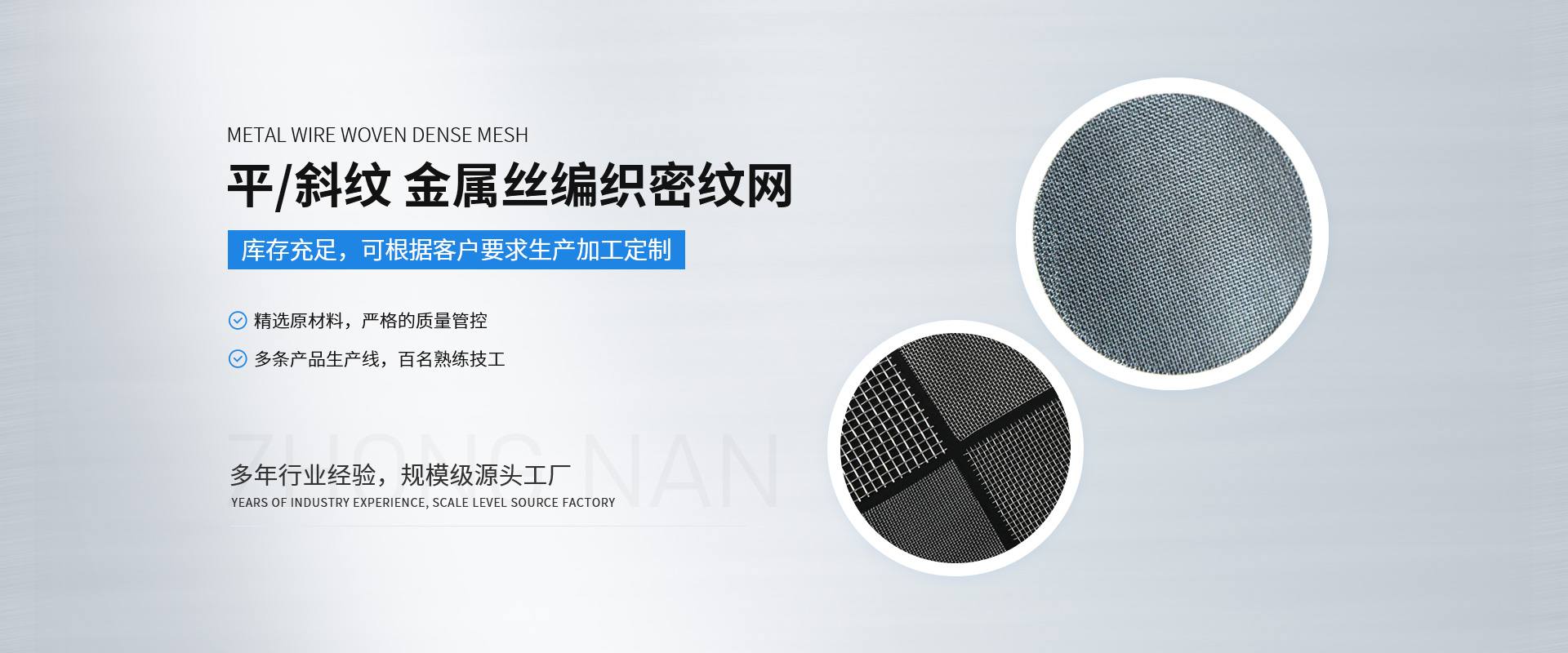 新鄉(xiāng)市中南金屬網(wǎng)有限公司成立于1999 年,公司設(shè)在河南省新鄉(xiāng)市。在過(guò)去的十幾年來(lái),我們堅(jiān)持以嚴(yán)格的管理措施、雄厚的技術(shù)力量、良好的工藝設(shè)施,質(zhì)量上乘、信譽(yù)為上為原則,把樹(shù)立良好的企業(yè)形象為工作宗旨,歷經(jīng)市場(chǎng)的嚴(yán)峻考驗(yàn)并贏得廣大用戶的一致好評(píng)。金屬絲網(wǎng)編織結(jié)構(gòu)形式有平紋和斜紋兩種方法,嚴(yán)格按照航空軍品標(biāo)準(zhǔn)HB1862—93和標(biāo)準(zhǔn)GB/T5330—2003標(biāo)準(zhǔn),并等效采用國(guó)際標(biāo)準(zhǔn)ISO9044—90標(biāo)準(zhǔn)組織生產(chǎn)。  公司擁有生產(chǎn)設(shè)備和技術(shù)人員,主要生產(chǎn)不銹鋼篩網(wǎng)、磨料網(wǎng)、金屬絲編織方孔網(wǎng)、篩網(wǎng)、濾網(wǎng) 、篩分網(wǎng) 、過(guò)濾網(wǎng)、不銹鋼網(wǎng)、絲網(wǎng)、金屬絲網(wǎng)、金屬絲編織密紋網(wǎng)、特種網(wǎng)、不銹鋼密紋網(wǎng)、荷蘭網(wǎng)、席型網(wǎng)。絲網(wǎng)材質(zhì)選用黃銅、錫青銅、不銹鋼、純鎳等。席型網(wǎng)規(guī)格7/44目—500/3500目,方孔網(wǎng)規(guī)格1/2目—500目,網(wǎng)孔25mm—0.028mm,產(chǎn)品廣泛用于機(jī)械、化工、化纖、石油、醫(yī)藥、橡膠、濾芯、固體果粒篩分、流體過(guò)濾以及裝飾、防塵、骨架支撐等。  我們以“視質(zhì)量為生命、以信譽(yù)求生存、以科技促發(fā)展、以優(yōu)*產(chǎn)品為客戶服務(wù)”的經(jīng)營(yíng)理念,真誠(chéng)的希望與各界人士攜手并進(jìn),共創(chuàng)輝煌!
